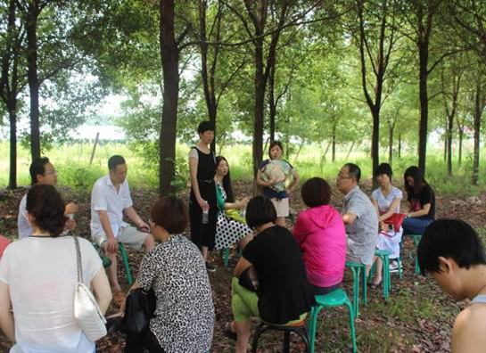 我們在小樹林里準備了桌椅,低碳又環(huán)保,總監(jiān)們相互交流積極愉快