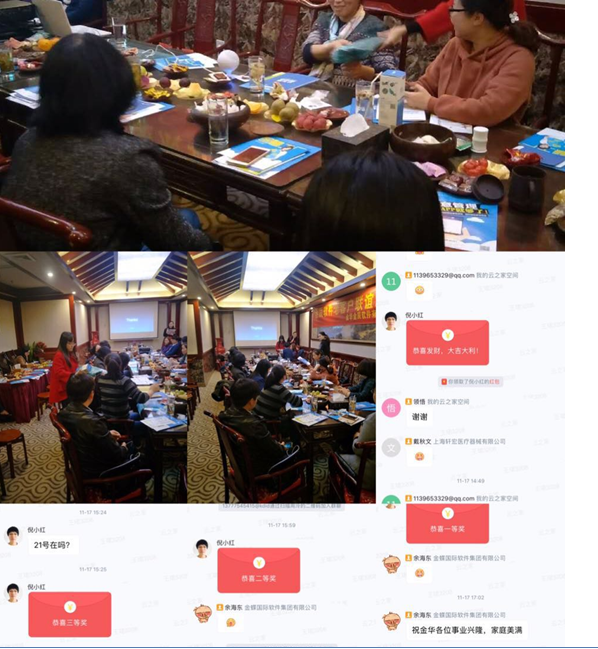 兩點四十,小伙伴們都到的差不多啦,金辰軟件的副總經(jīng)理倪小紅開場給大家做了活動說明,強調(diào)活動的意義,同時感謝客戶的積極參與,接下來由金蝶國際軟件集團有限公司溫州金華的云之家分銷管理經(jīng)理周泠周老師介紹了一下云之家,還有金蝶國際軟件集團有限公司溫州金華片區(qū)的總監(jiān)余海東余老師介紹了云之家基于kis產(chǎn)品的請應(yīng)用,最后由金辰kis事業(yè)部的徐春蓮介紹了KIS云專業(yè)版15.0的新增功能。在此期間穿插了有獎問答和抽獎的環(huán)節(jié)。