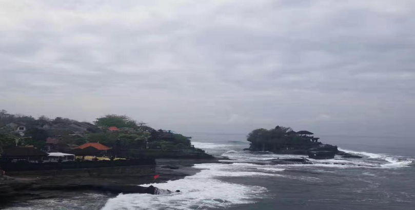 睡了一覺后,終于擺脫了暈機的痛苦。在餐廳里享用了一頓中西合璧的自助早餐,正式開啟旅程。第一站前往海神廟。海神廟是巴厘島的地標性景點,它獨具一格的坐落在離海不遠的巨巖上,守護著巴厘島和熱愛著它的人們。潮漲時,海神廟獨立于大海之上,遠看就像一頂海上的皇冠;退潮時,海神廟又與陸地連接,供人祭拜參觀。來巴厘島,豈能不到海神廟。寺廟對岸有一座觀景亭,可以遠眺落日景致,看陽光灑滿印度洋,金色的光線勾勒出海神廟古典而又充滿浪漫情調的樣子。