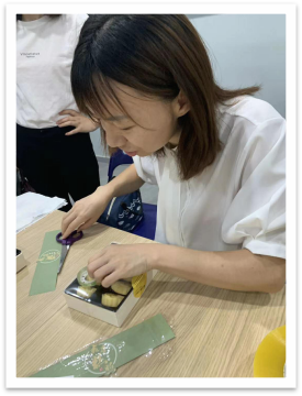 培訓(xùn)內(nèi)容結(jié)束后,我們精心為客戶準(zhǔn)備了手工制作綠豆糕的活動。從原料的購買,加工,翻炒,成型以及包裝,都匯聚了我們對客戶的感恩,為客戶帶去一份美好的體驗。但是稍有遺憾的是中間翻炒時間有點久,一部分客戶沒有繼續(xù)等待就先離開了,沒有品嘗到手工制作的綠豆糕。