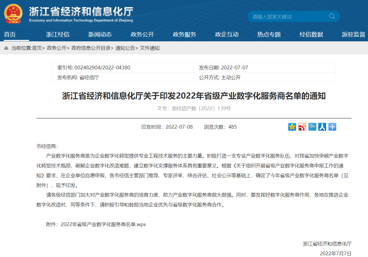 金華金辰軟件有限公司入選2022年省級產(chǎn)業(yè)數(shù)字化服務(wù)商